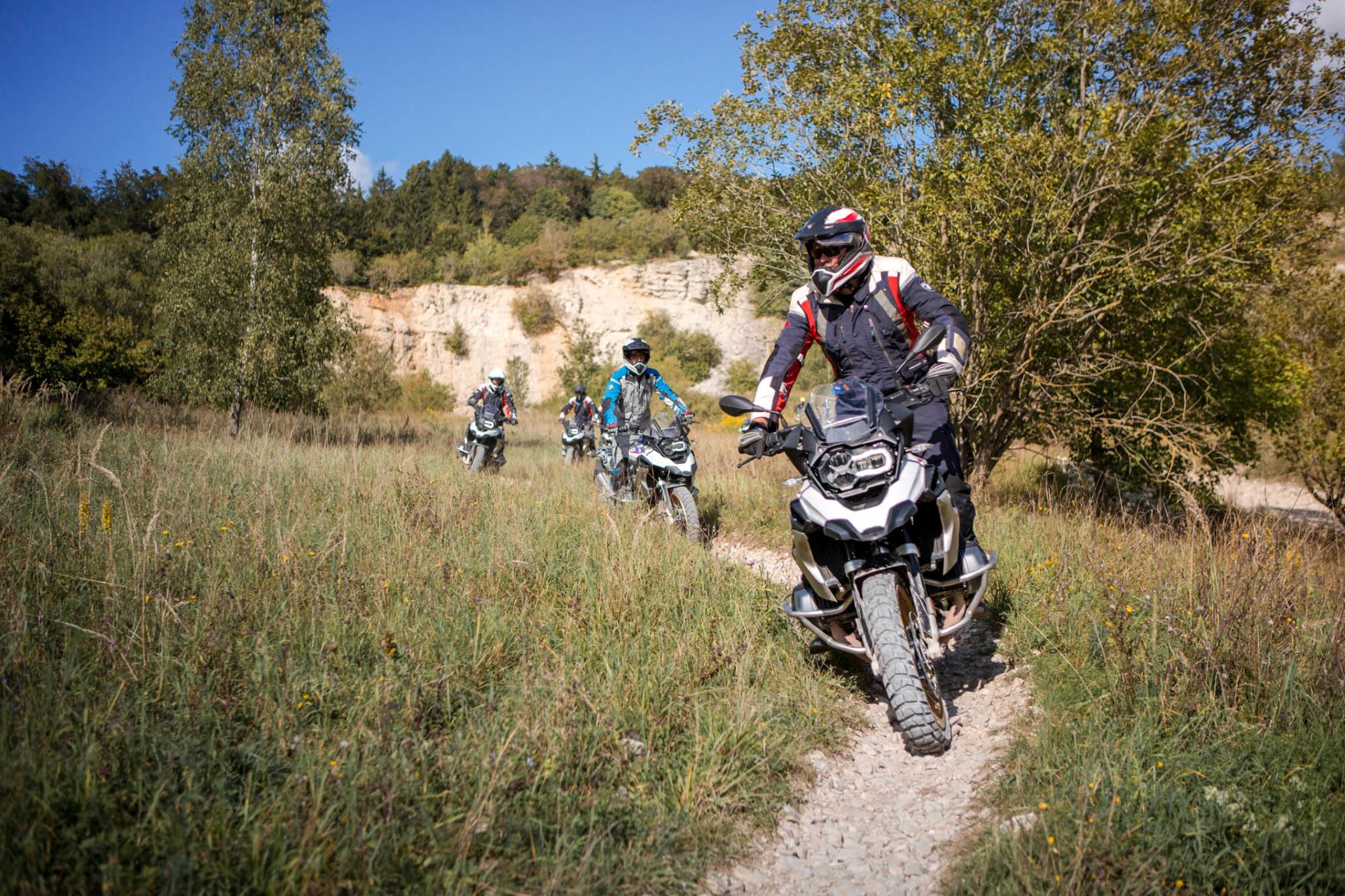 Anfänger*innen und erfahrene Offroad-Fahrer*innen, die intensiv von den Kenntnissen und Erfahrungen unserer zertifizierten BMW Motorrad Instruktor*innen lernen wollen, sind bei diesem Training richtig. Verschiedene Leistungsgruppen machen es möglich, dich genau da zu trainieren, wo du dich weiterentwickeln kannst. Bei diesem Training sind - je nach Gruppe - auch längere Steilhänge, das Durchqueren von Sand- und Wasserpassagen sowie das Bremsen auf Schotter Teil des Trainings.
