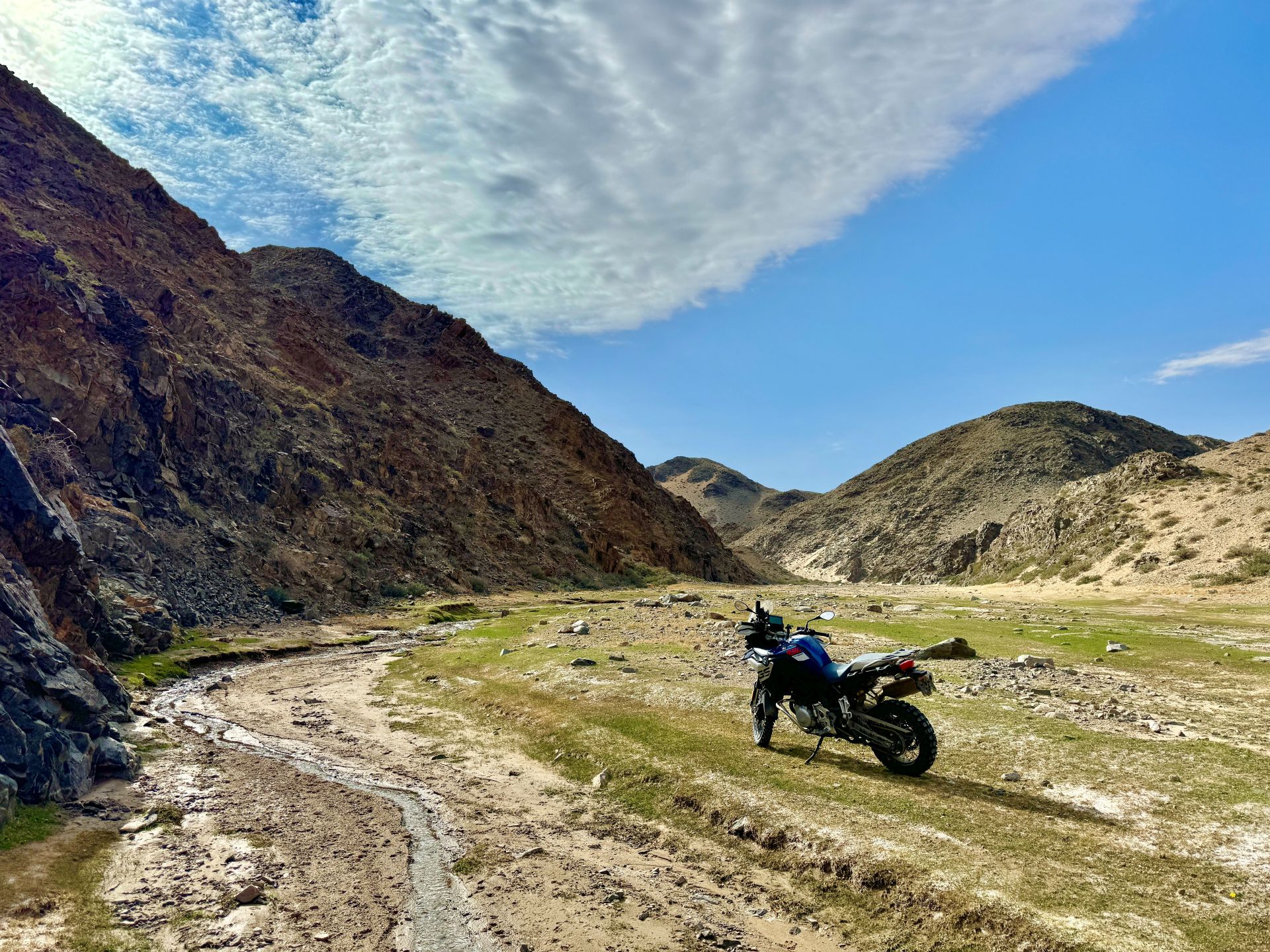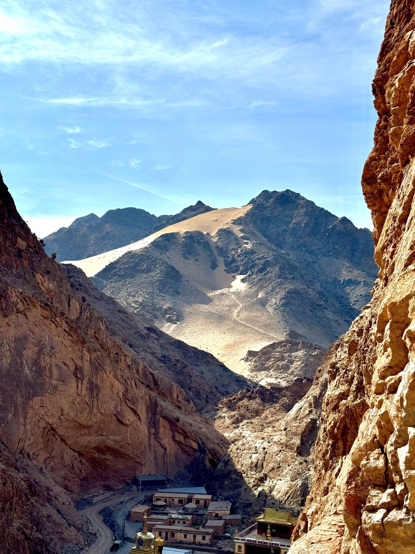 Heute erwarten uns spektakuläre Trails entlang der Helan-Berge. Wir passieren eine beeindruckende Landschaft aus Schotter- und Sandwegen und genießen ein traditionelles mongolisches Mittagessen bei einer einheimischen Familie. Am Nachmittag führt uns die Route durch ein ausgetrocknetes Flussbett bis ins industrielle Jilantai am Rande der Ulan Buh Wüste.