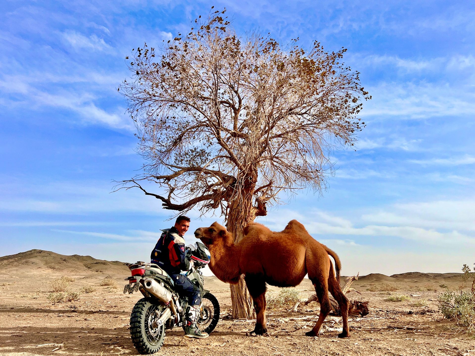 Heute erwarten uns spektakuläre Trails entlang der Helan-Berge. Wir passieren eine beeindruckende Landschaft aus Schotter- und Sandwegen und genießen ein traditionelles mongolisches Mittagessen bei einer einheimischen Familie. Am Nachmittag führt uns die Route durch ein ausgetrocknetes Flussbett bis ins industrielle Jilantai am Rande der Ulan Buh Wüste.